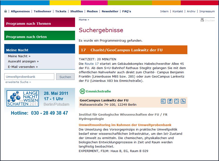 Fig. 1: Source: Long night of the sciences, Berlin 2011, website snapshot programme "Umweltprobenbank" Zoom in