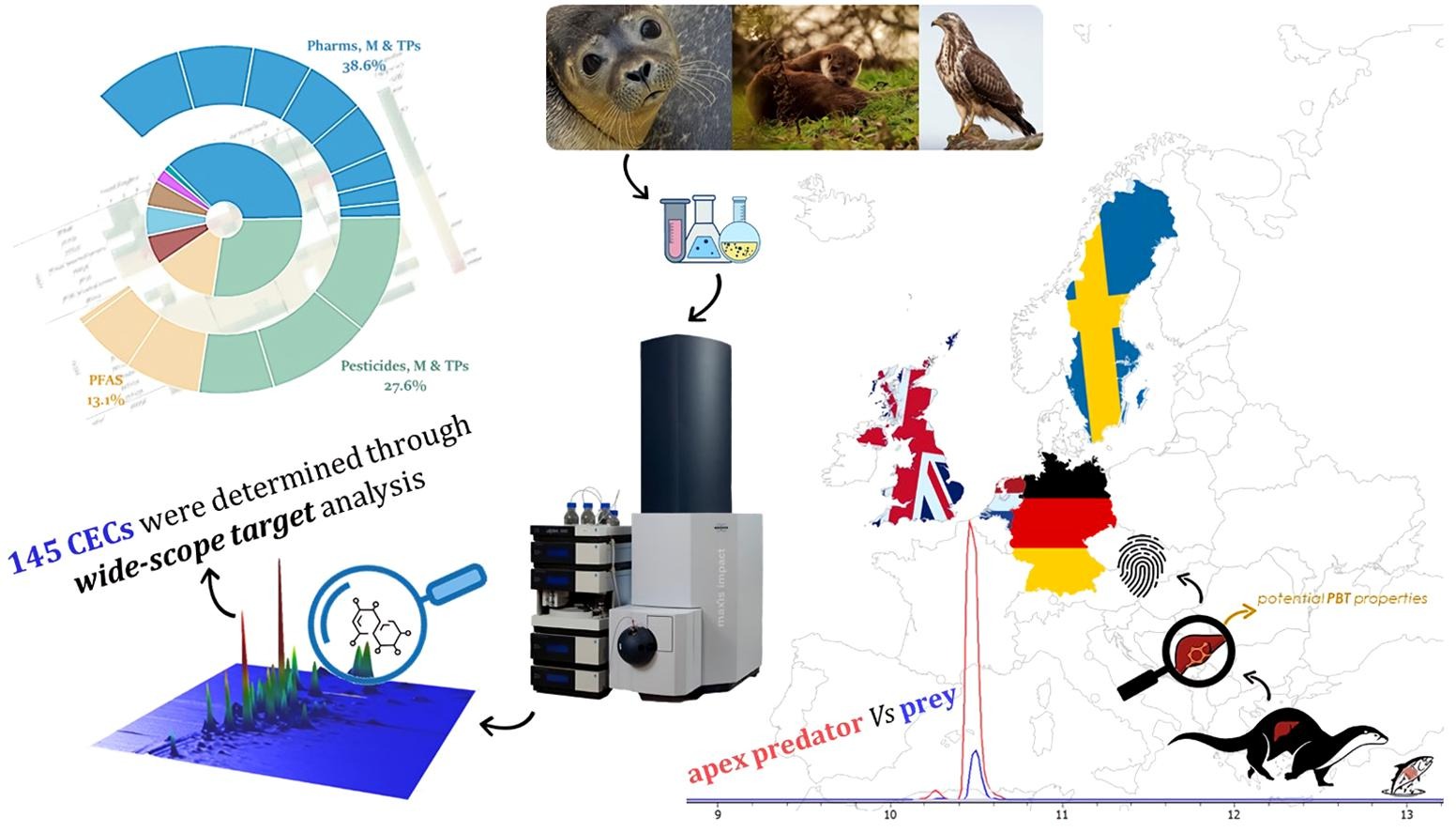 Assessment of contaminants of emerging concern in European apex predators and their prey by LC-QToF MS wide-scope target analysis
